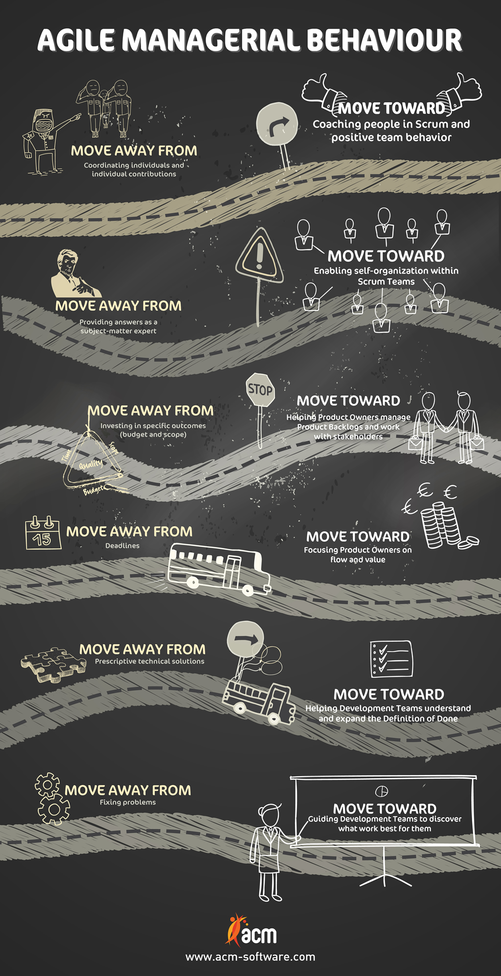 Agile requires managerial mindset shift; from controller to enabler, from manager to servant-leader.